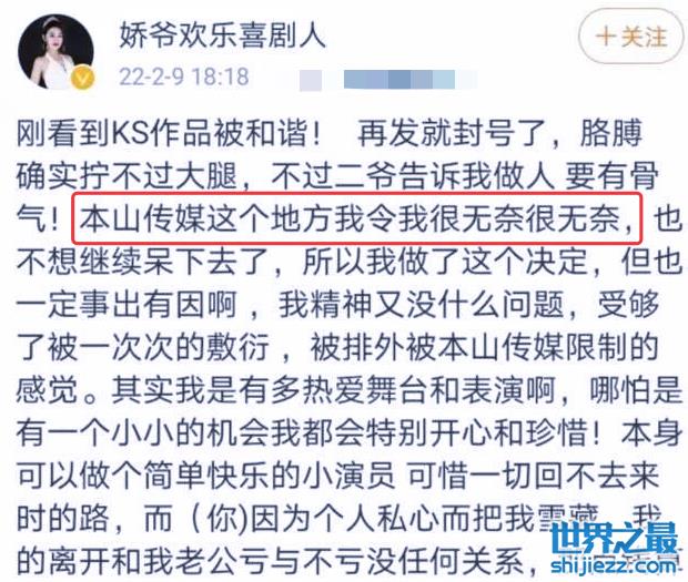再后来娇娇直接吐露前夫生意失败因为赵本山,而且自己在本山传媒被雪藏,限制了个人发展,在社交账号上公开表达对赵本山的不满,这一系列的爆料自然引起不少质疑的声音。