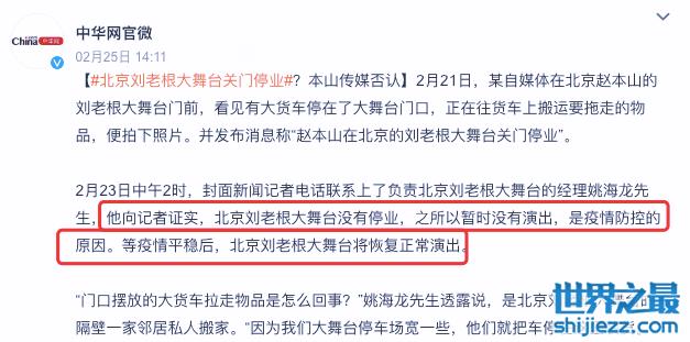 后来娇娇也提到过刘老根大舞台亏钱,而就在上个月,有某媒体拍到刘老根大舞台门口停放货车装满了物品,称大舞台要关门停业。幸好大舞台的经理回应称是因为大环境因素,等平稳后自然会恢复营业。