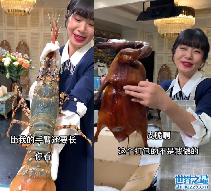 龙虾大到比胳膊还要长,烤鸭更是大到两只手都抓不住,这些已经超过寻常尺寸的食材,看起来就像是加了放大特效一般。
