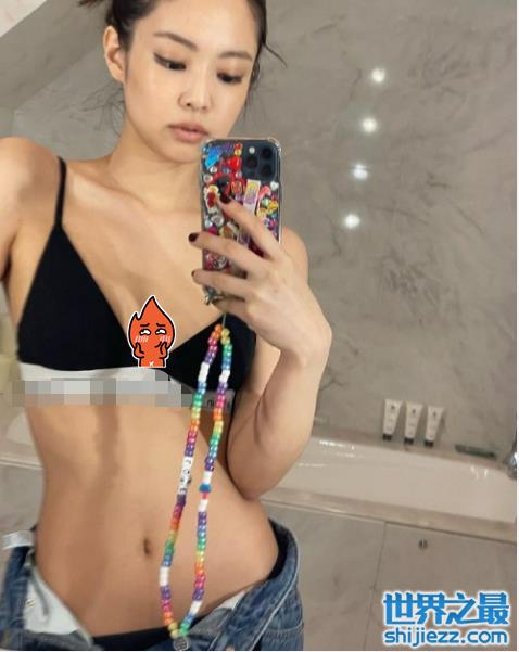 近日,Jennie在个人社交平台晒出自己穿内衣的对镜自拍。照片中的Jennie身材极好,穿黑色吊带内衣,露出纤细的手臂和精致的锁骨,腰上没有多余的赘肉,她举着手机,可以将手撑在自己的腰上,看得出Jennie真的很瘦。