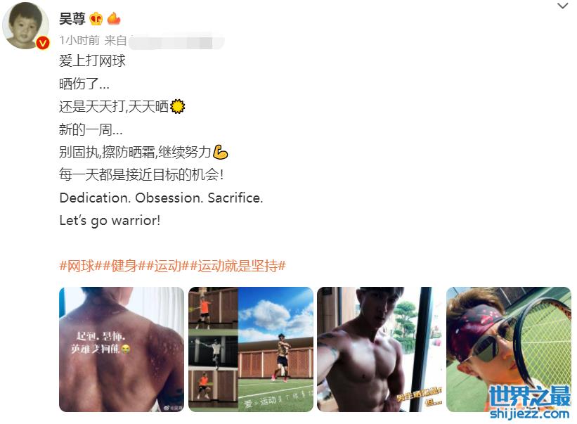 近日,男星吴尊在社交平台上晒出了一组自己的运动照,因为长期户外运动的原因,吴尊被太阳严重晒伤,全身的皮肤的状态并不好,受伤状态相当严重。