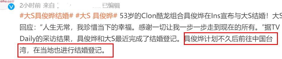 可惜具俊晔最后因为公司压力还是选择放弃大S,多年后具俊晔曾自曝和大S的恋情,大S还表示不回应。如今大S离婚不到半年就决定和具俊晔闪婚,足以看出大S真的是喜欢这个人。