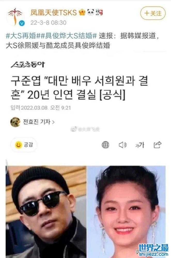 3月8日,韩国歌手具俊晔在个人SNS发表长文,宣布将与大S徐熙媛结婚: