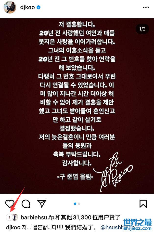 大S官宣婚讯后,悄悄用另一账号与具俊晔互动,甜蜜称呼对方为“欧巴” ...
