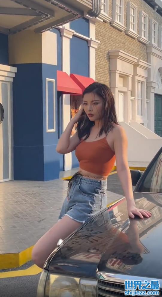 徐冬冬穿吊带秀身材!手撑豪车秀长腿,头发微湿趴桌子上眼神妩媚 ...