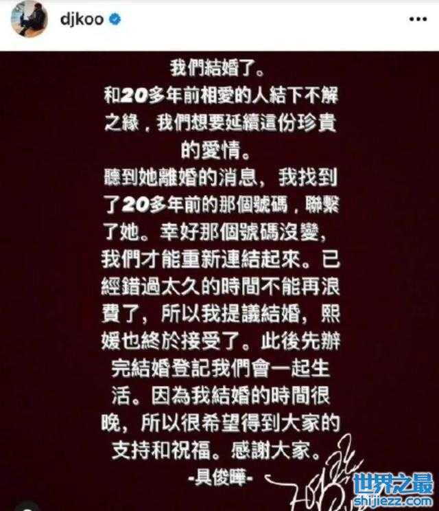 男方是韩国艺人具俊晔,他忽然就在ins发了帖子,宣告自己和徐熙媛结婚。