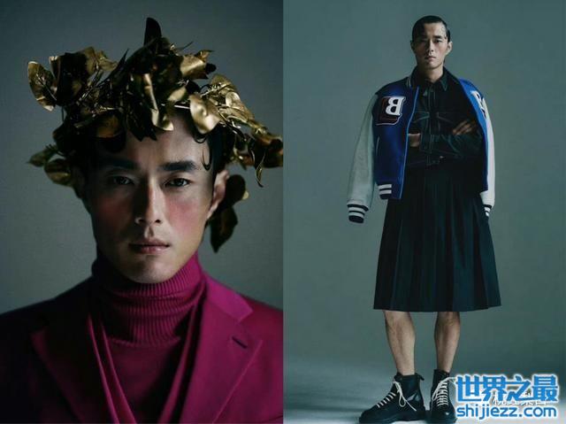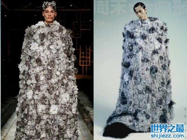 同款造型,蒋龙也穿着上过杂志封面,同样有点滑稽。