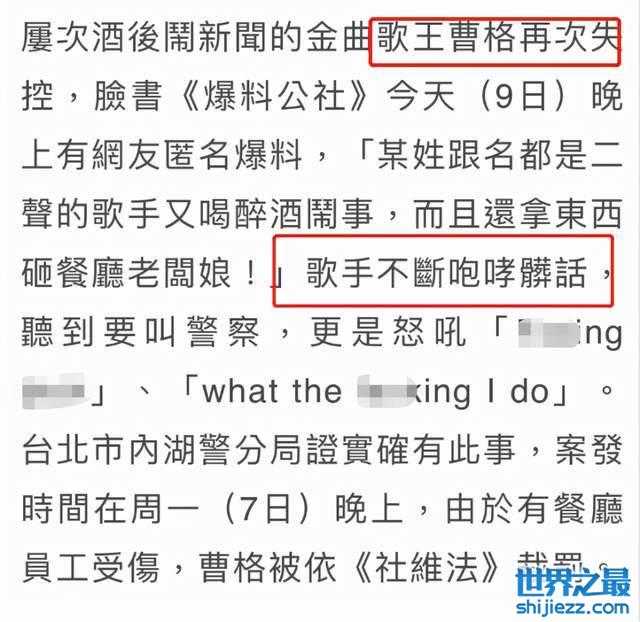 曹格醉酒餐厅闹事!狂飙脏话扔东西砸人致伤,遭警方依法惩治 ...