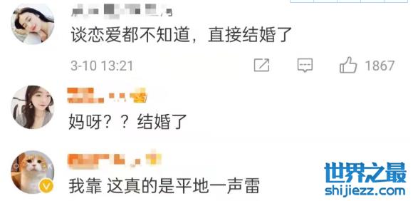 可吃瓜群众并不知情啊,他谈恋爱也没公布,大家都以为他还是单身呢,突然一下就说结婚了,网友们反应都很惊讶,甚至还有人评论,真是平地一声雷。