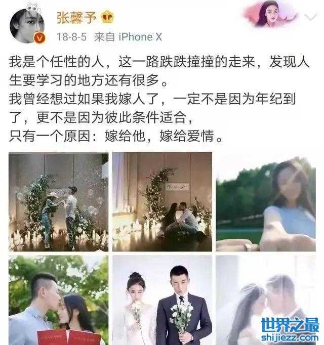 张馨予和前任分手后,在大众眼里就一直是单身,结果有一天,她突然发文,“不是因为年纪到了,也不是彼此条件适合,只有一个原因,嫁给他,嫁给爱情”。这个新闻出来后,所有人都愣住了,大家的反应都是“她不是单身吗,怎么突然就结婚了”。