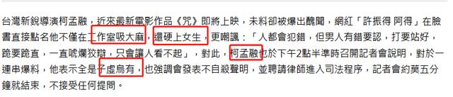 名导柯孟融被曝涉毒骚扰女性!称反被敲诈500万,已移交律师处理 ...