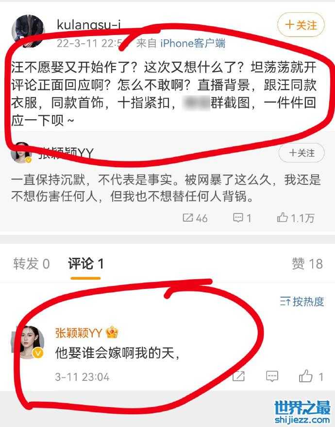 另外,关于两人直播背景、同款衣服、同款首饰以及十指紧扣等,网友也让张颖颖正面回应一下,但她没有回应却说“他娶谁会嫁啊我的天”。