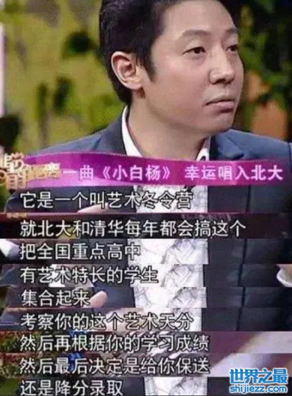 撒贝宁不仅是优秀的主持人,还是个会唱歌的学霸。很多观众都知道撒贝宁是被保送北大的,可据说当时是因为参加了清北艺术夏令营,在数百人中凭借一首《小白杨》获得了北大的保送资格,当然优异的成绩也是最基本的。