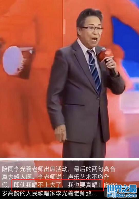 上个月,李光羲老师还在进行商演,一身西装十分有魅力。拍摄者直言其最后两句高音十分感人,李光羲老师现场还表示“就算唱不动,也绝不假唱。”艺术家的风骨和敬业态度,令人尊敬动容。