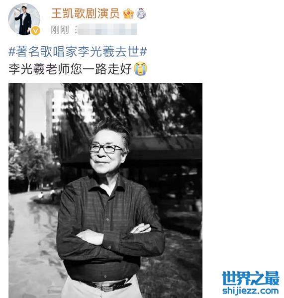 此消息一出,众人伤心不已。歌剧演员王凯发文表悲伤,希望李光羲老师一路走好,并配上哭泣表情包,可见悲伤心情。