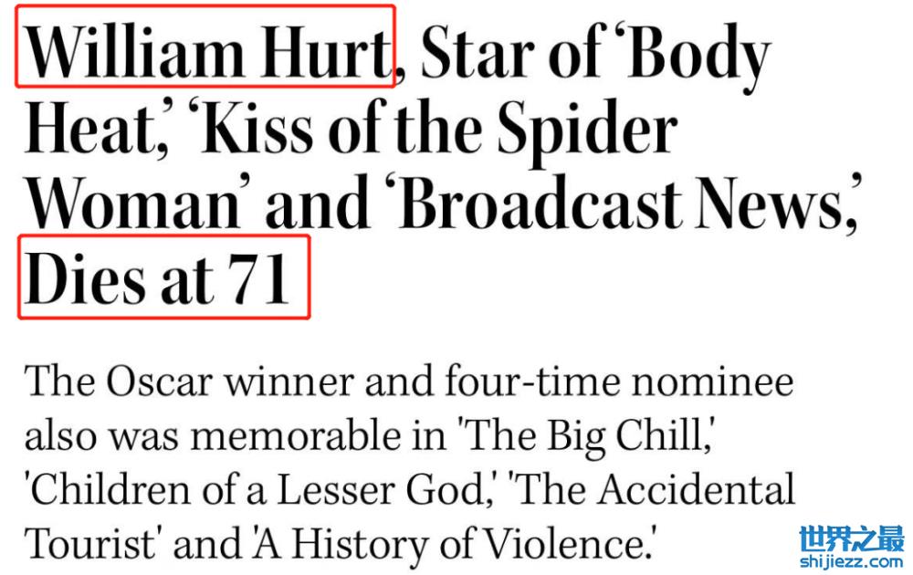 奥斯卡影帝威廉赫特逝世!享年71岁,曾出演漫威系列“罗斯将军” ...