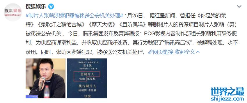 去年制片人张萌受到某爽风波的影响,被移送公安机关接受调查。