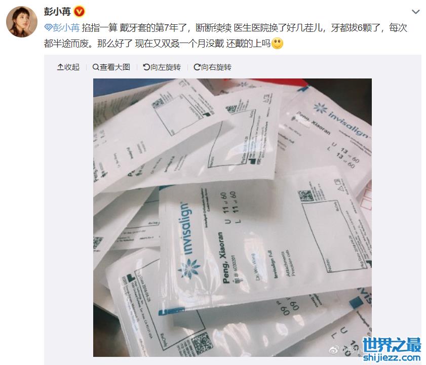 被整容传闻缠身,黑通稿满天飞的时候,公司不发声,只能派出彭小苒发文晒图暗示自己拔了六颗牙和戴了7年牙套,才导致脸型有变化。