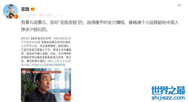 而这段吐槽虽然得到了许多人的认同,但也有人出来反驳巩汉林,此前足球评论家董路就在自己的社交平台吐槽巩汉林让他有事儿说事儿,别总说国足丢脸,还说巩汉林平时走穴赚钱春晚演个小品就能给中国人挣多少脸似的。