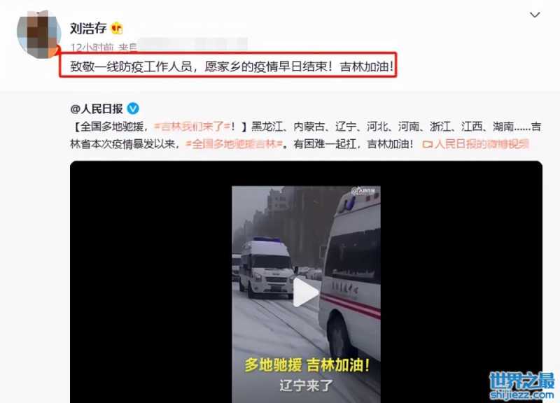 新生代演员刘浩存,作为吉林人也在社交平台为吉林发声,希望家乡的疫情早日结束,为吉林加油。