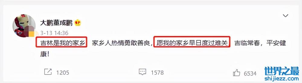 不仅如此,还有演员大鹏也在个人的社交平台表示为家乡驰援。说自己是吉林人,希望家乡早日渡过难关,吉林平安。