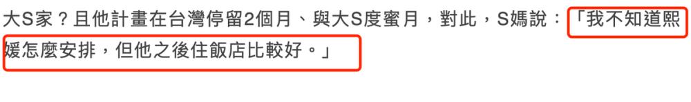 对于来自远方韩国的具俊晔之后的住所安排,大S也并没与母亲沟通,大S母亲则表示“但他之后住饭店比较好”。