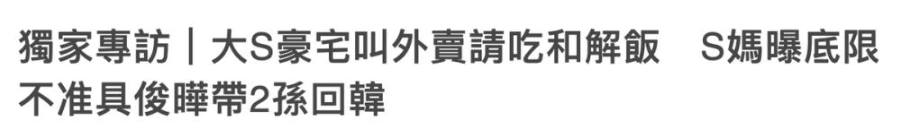 对此,大S表示只要她妈妈愿意来聚餐就代表她不那么生气了。然而大S却表示自己还是有点生气,但是为了自己的女儿让步,并且愿意与自己的新女婿吃饭,但是只有唯一的要求那就是她的外孙女和外孙子一定要在台湾受教育,学好中文,不让具俊晔带去韩国,需要等到小孩长大留学再说。