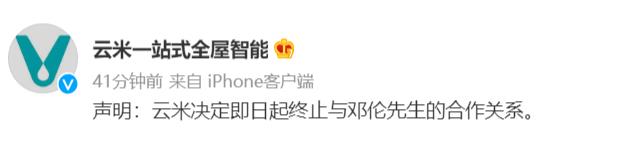 在正式通报出来之后,邓伦代言的品牌“云米”率先发声,正式宣告与邓伦解除合作关系值得一提的是,仅仅两个小时前,该品牌才正式官宣邓伦为旗下代言人,结果却毫无预兆地出现这种事,不得不说,品牌方的确行动迅速,以最快的速度与邓伦做出切割。