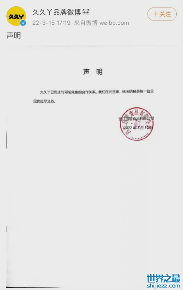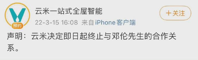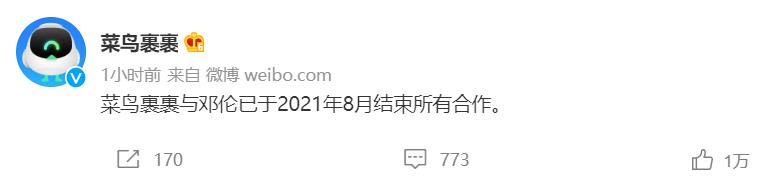 好人家调味也宣布与邓伦的合作已于2022年1月到期终止,菜鸟裹裹与邓伦也于2021年8月结束所有合作。