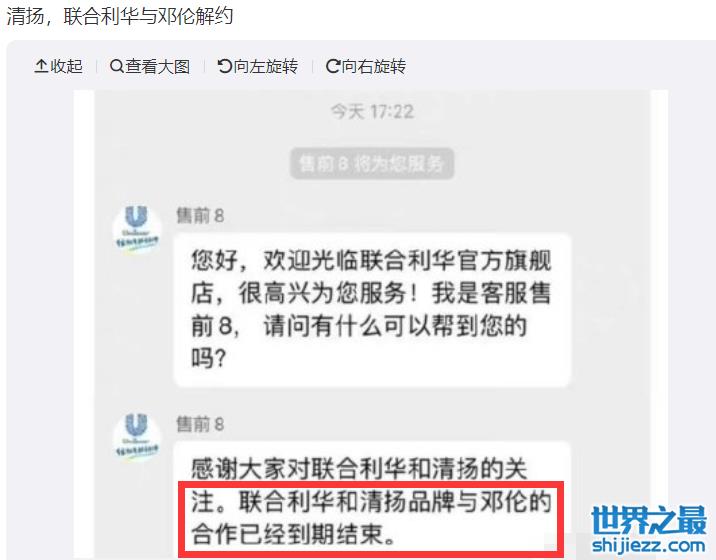 清扬与联合利华也宣布与邓伦的合作到期结束,除此之外,清扬官方账号已经将邓伦所有宣传设置了权限。