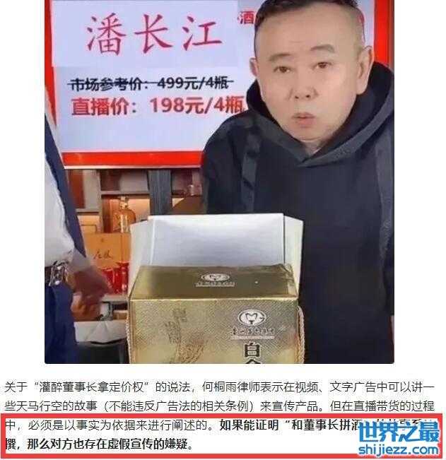 有律师也有发声,称在直播带货过程中,必须以事实为依据来进行阐述,如果像潘长江所说的,跟“董事长拼酒”的故事杜撰,那么潘长江就存在虚假宣传的嫌疑。