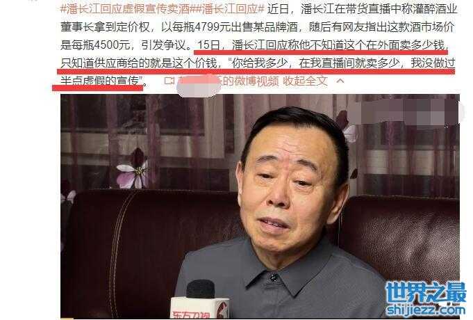 潘长江否认自己做了虚假宣传,不过并未提到和某董事长拼酒的事儿。另外,关于价格的问题,潘长江称自己不知道外面是多少价格,只知道厂家给自己多少钱。也就是说,潘长江不知道那个酒市场价是4500元,他只知道厂家给他多少钱,他在直播间就多少钱。
