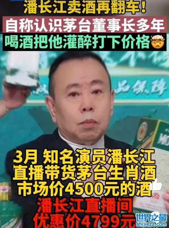 事情是这样的,潘长江直播卖酒的时候,把原本定价4500元的某品牌生肖酒,利用话术欺骗消费者。潘长江说自己跟某品牌董事长认识十多年了,把董事长给灌醉了,才拿到了4700元的价格。然而这个酒原价是4500元一瓶,4799元的价格比原价还贵了299元。