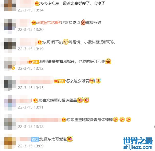 这则视频下樊振东的粉丝们也纷纷留言,说樊振东最近比赛都瘦了应该多吃一点,也有人说樊振东一直低头吃饭的样子十分可爱,也有网友猜测樊振东的心理说到不管是鸡蛋饼还是小馒头蘸汤樊振东都不挑。