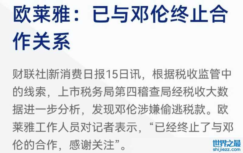 劲仔小鱼、娜丽丝、杰克琼斯与邓伦也已终止合作。
