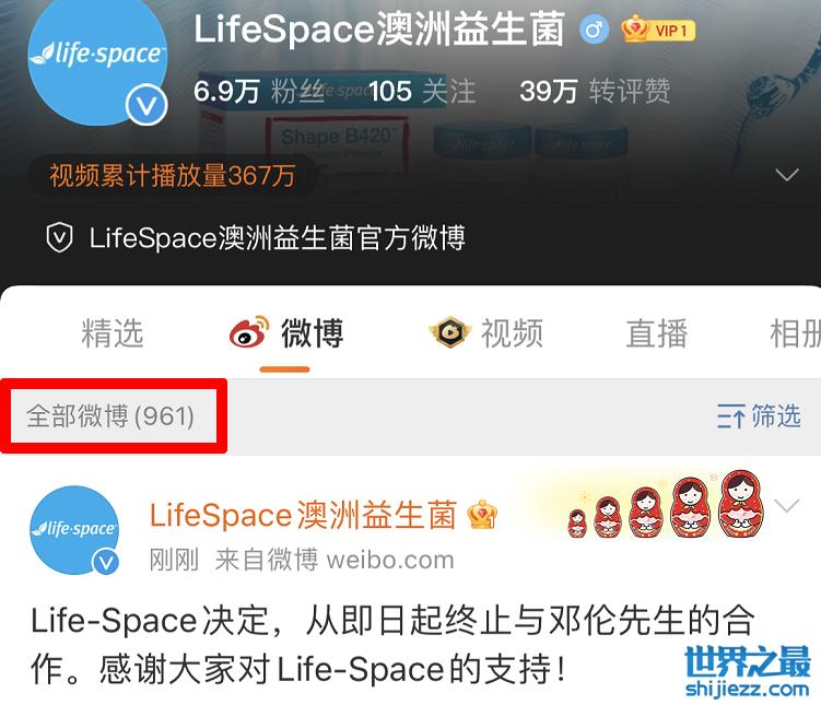另外,lifespace宣布即日起与邓伦终止合作,还感谢大家的支持,但该品牌宣布解约几分钟后又将这条动态给隐藏,显然全部动态961条,但终止合作的动态被隐藏,不知道是不是观望一下再宣布,其态度并不明朗。