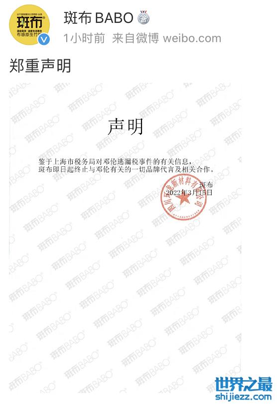 目前,邓伦名下的代言高达近20个,陆陆续续也都发出了终止合作的声明,率先解约的品牌是云米,邓伦被通报不到十分钟该品牌就立即与邓伦解约,而从官宣邓伦成为代言人到宣布终止合作仅仅只有两小时零八分,真是打破了纪录,品牌方的行为也让网友看到了态度,为其点赞。