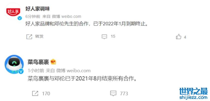 好人家调味宣布与邓伦的合作已于2022年1月到期终止,菜鸟裹裹与邓伦也于2021年8月结束所有合作。值得一提的是,邓伦是菜鸟裹裹的首个品牌代言人,没想到第一次找明星代言就翻车了。