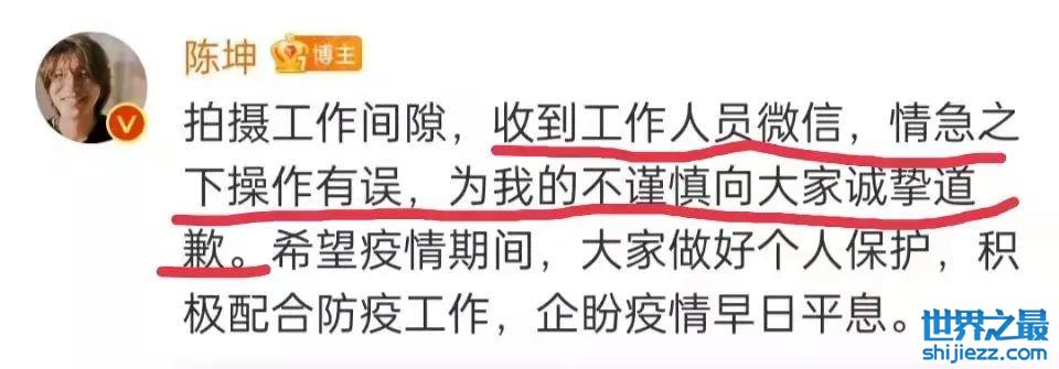 对此,陈坤意识到了自己的错误,他立即道歉,“情急之下操作有误,为我的不谨慎向大家诚挚道歉”,并且删掉了原来的动态。