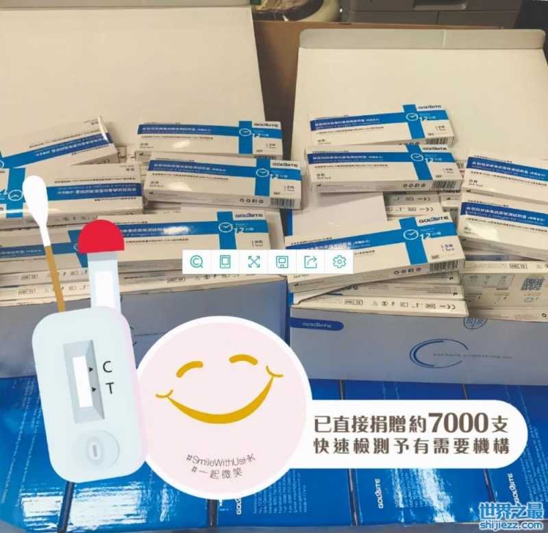 何超莲晒出自己做公益的贡献场景,晒出自己为香港市民们捐赠的7000支快速检测器。