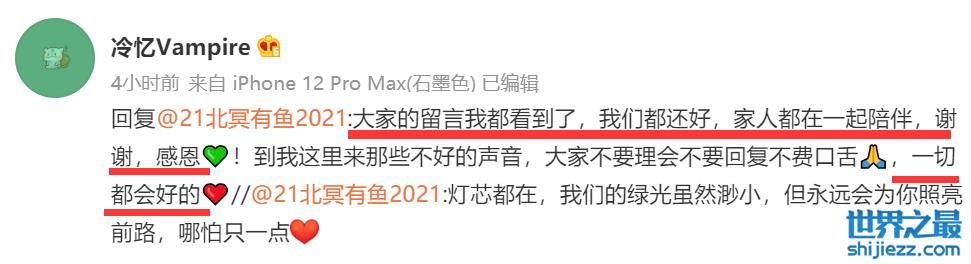 另外,表哥还回复网友说“大家的留言都看到了,我们都还好,家人都在一起陪伴,谢谢,感恩。”另外,针对不好的声音,表哥也劝粉丝不要理会不要回复不要费口舌,一切都会好的。