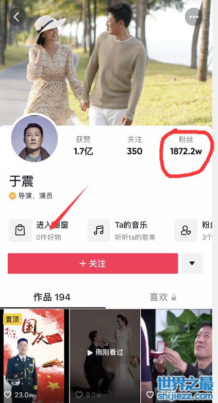 于震在某视频平台粉丝拥有1800多万,与其他明星网红不同的是,于震只在这上面分享生活,从没有带货过,橱窗那里也是0,背景封面就是他们夫妻二人的甜蜜合照,足见于震是个爱妻子,并且始终记得自己是个演员,不会急功近利捞金的人。