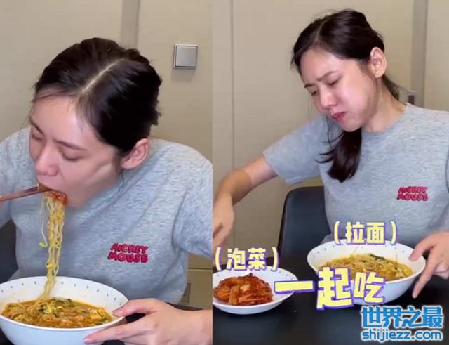 秋瓷炫素颜吃拉面不怕胖!皮肤出油反光明显,狼吞虎咽大口狂吃 ...