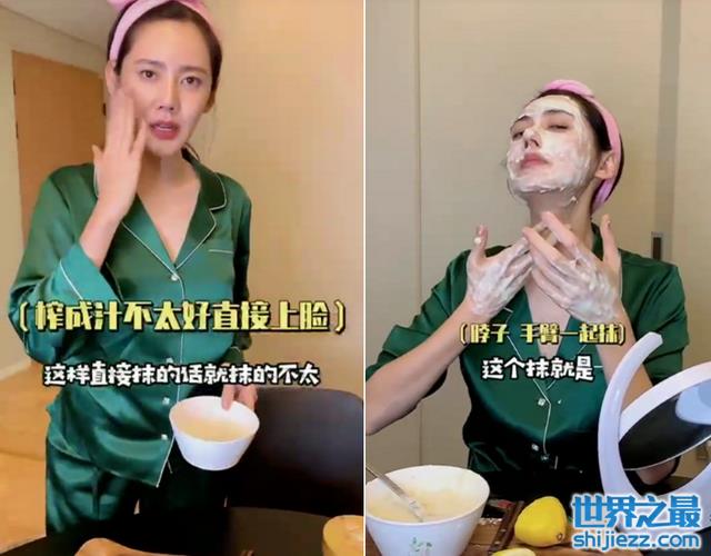 秋瓷炫还会教网友自制面膜,整个视频看起来她非常专业,在将各种水果榨成汁后因为太稀不好涂在脸上,她便在果汁中加入了面粉,最终做成了一盆糊糊,然后就看着她把这些糊糊往脸上、脖子上、手臂上涂,场面还有一丝好笑。