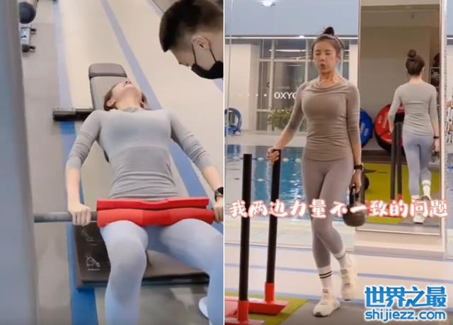 女星伊一穿紧身衣健身!身上压180斤器械,男教练一旁全程保护 ...