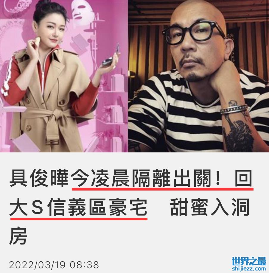 前段时间大S闪婚嫁韩国欧巴具俊晔的消息引外界热议,据悉,两人之前谈过一段恋爱,但分手后有20年没有再见面,在未见面的情况下,两人已于韩国登记结婚,而后具俊晔赴台与大S见面并度蜜月,算下时间,3月19日正好是十天隔离期结束的日子,台媒也报道了最新的消息。
