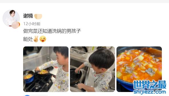 近日,谢楠在某社交平台晒出了一组照片,照片中她的大儿子吴所谓正做着菜,呈现出来的菜卖相很好,相信许多人看到都要流口水。谢楠还配文称“做完菜还知道洗锅的男孩子能处”,引来了许多粉丝和网友的关注。