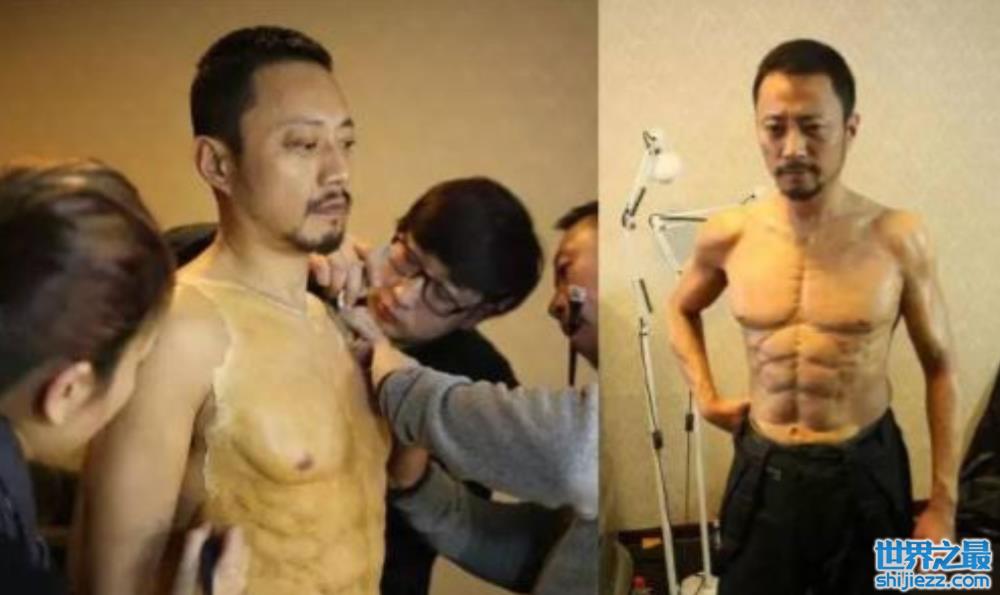 在《老炮儿》中,为了角色需要,张涵予的肚子上是有刀疤的,且他的腹肌是精瘦型的,是贴合他的人物形象,为剧情服务的。