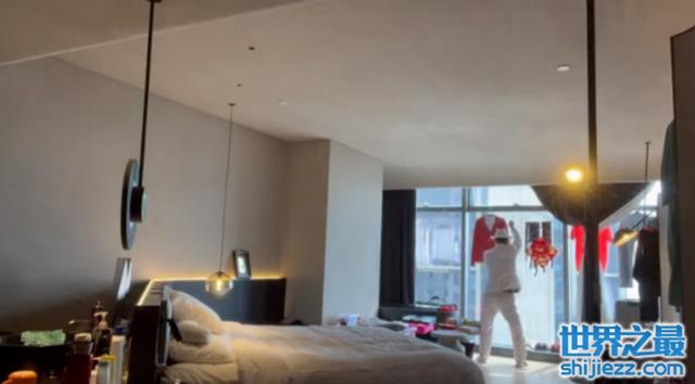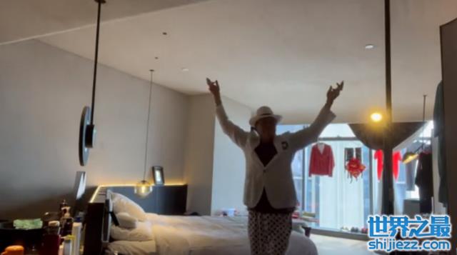 兴奋的万梓良独自在房间里走来走去,不时地停在窗边,对着窗外扭腰摆胯,看上去很是放松。从视频中可以看出,万梓良的房间陈设简单,阳台外面晒着的红色西装很是显眼,昏黄的灯光倒是显得温馨。
