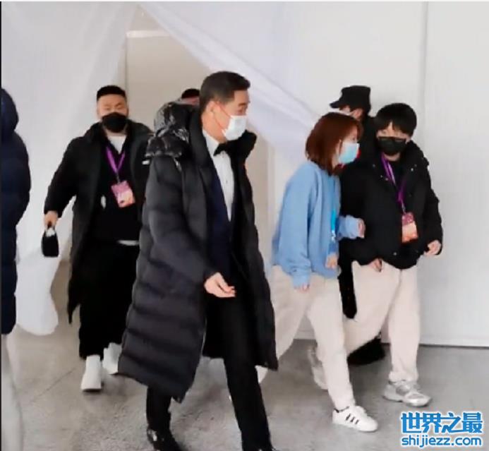 张国立一路走过,带着口罩,背看起来有些佝偻,但是步伐还是很快,一路上都没有和周围工作人员交流,只顾着往前走。脚上的皮鞋擦得发亮,看起来很精神。